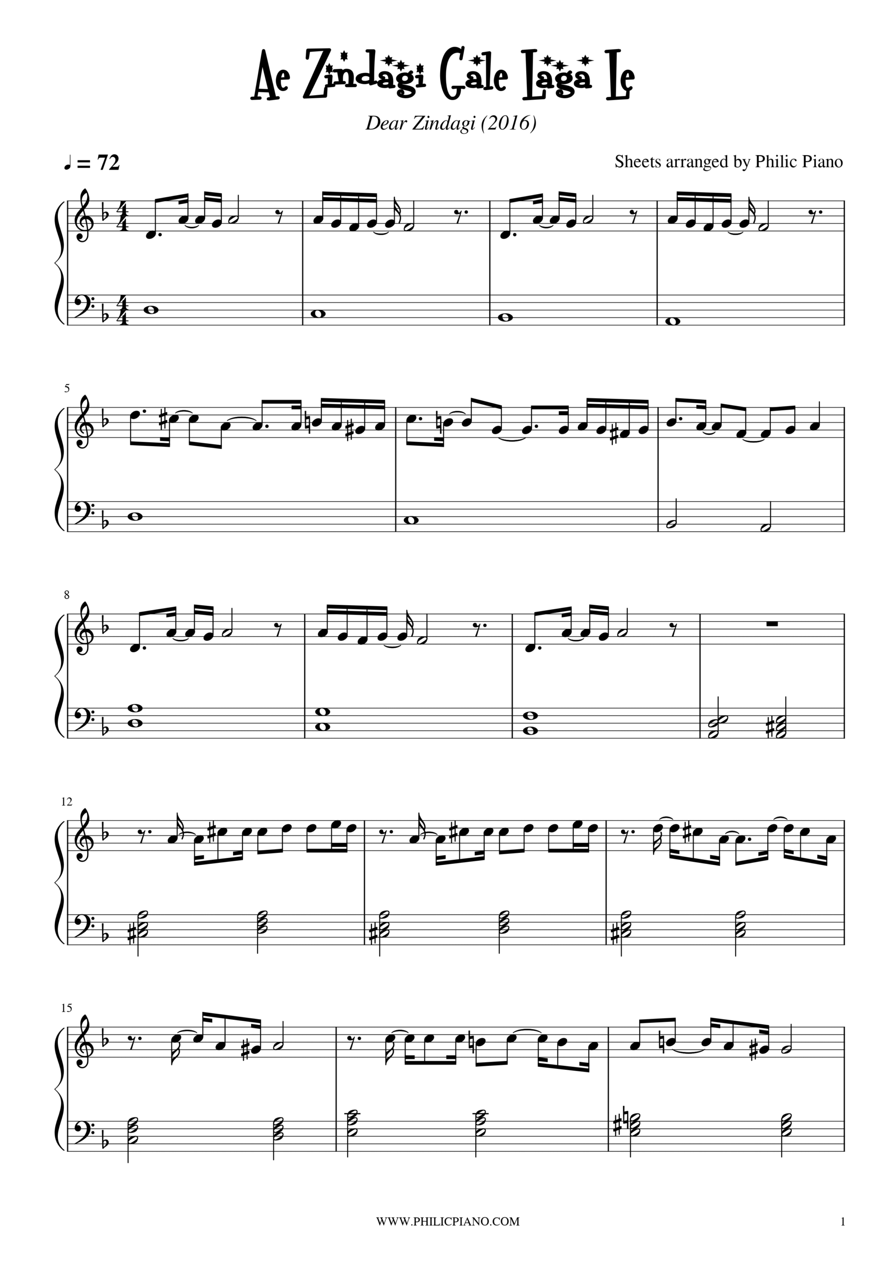 Ae Zindagi Gale Laga Le Piano Notes/Sheets/MIDI*
