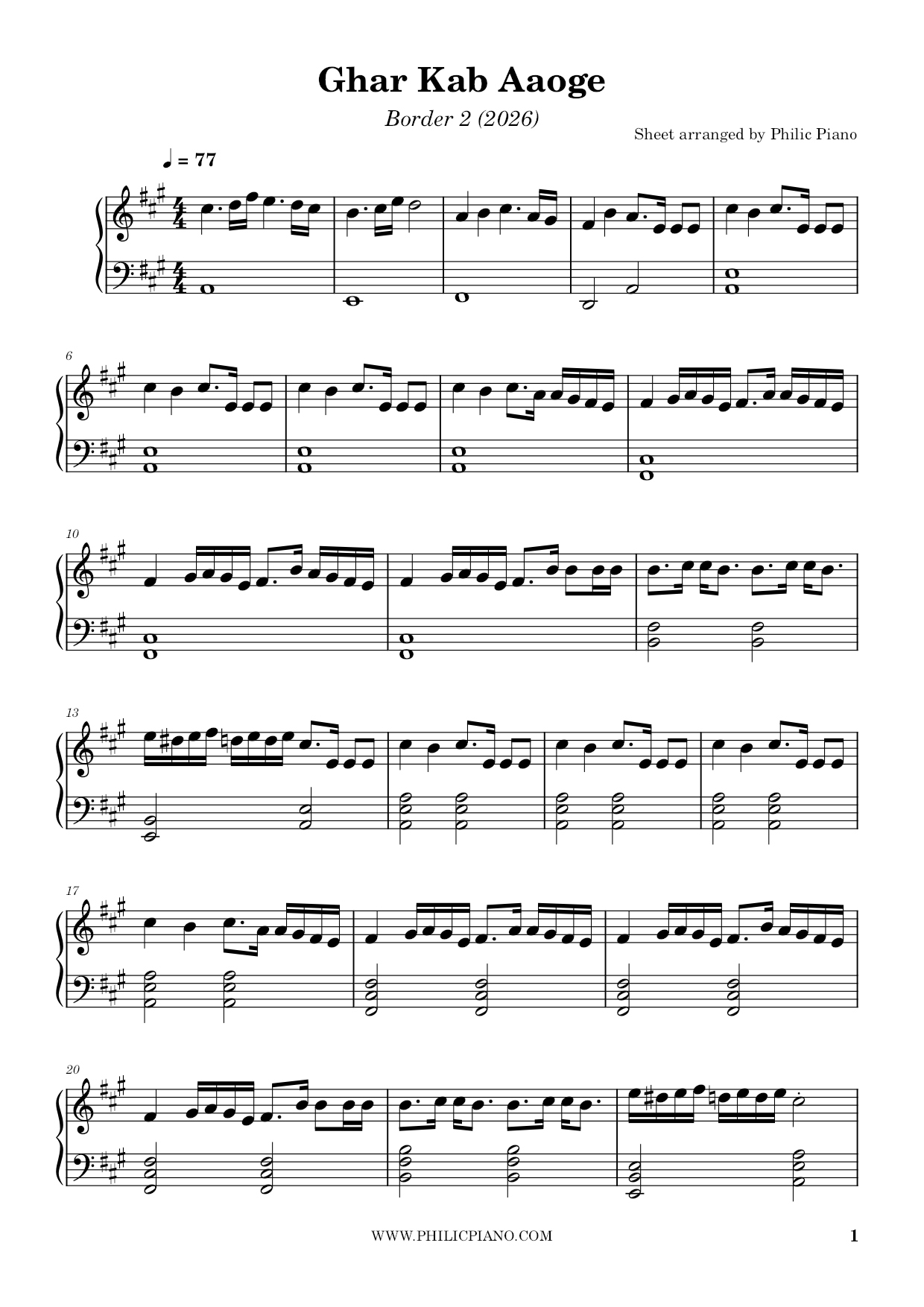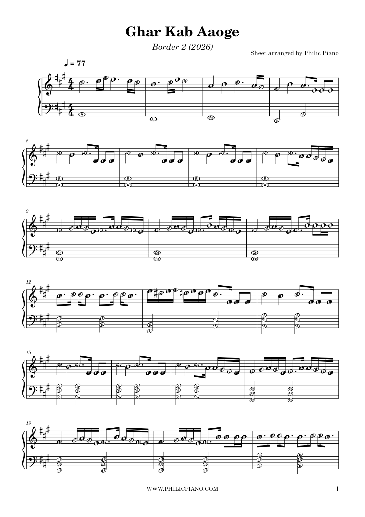 Download Piano Notes/Sheets/MIDI of Ghar Kab Aaoge