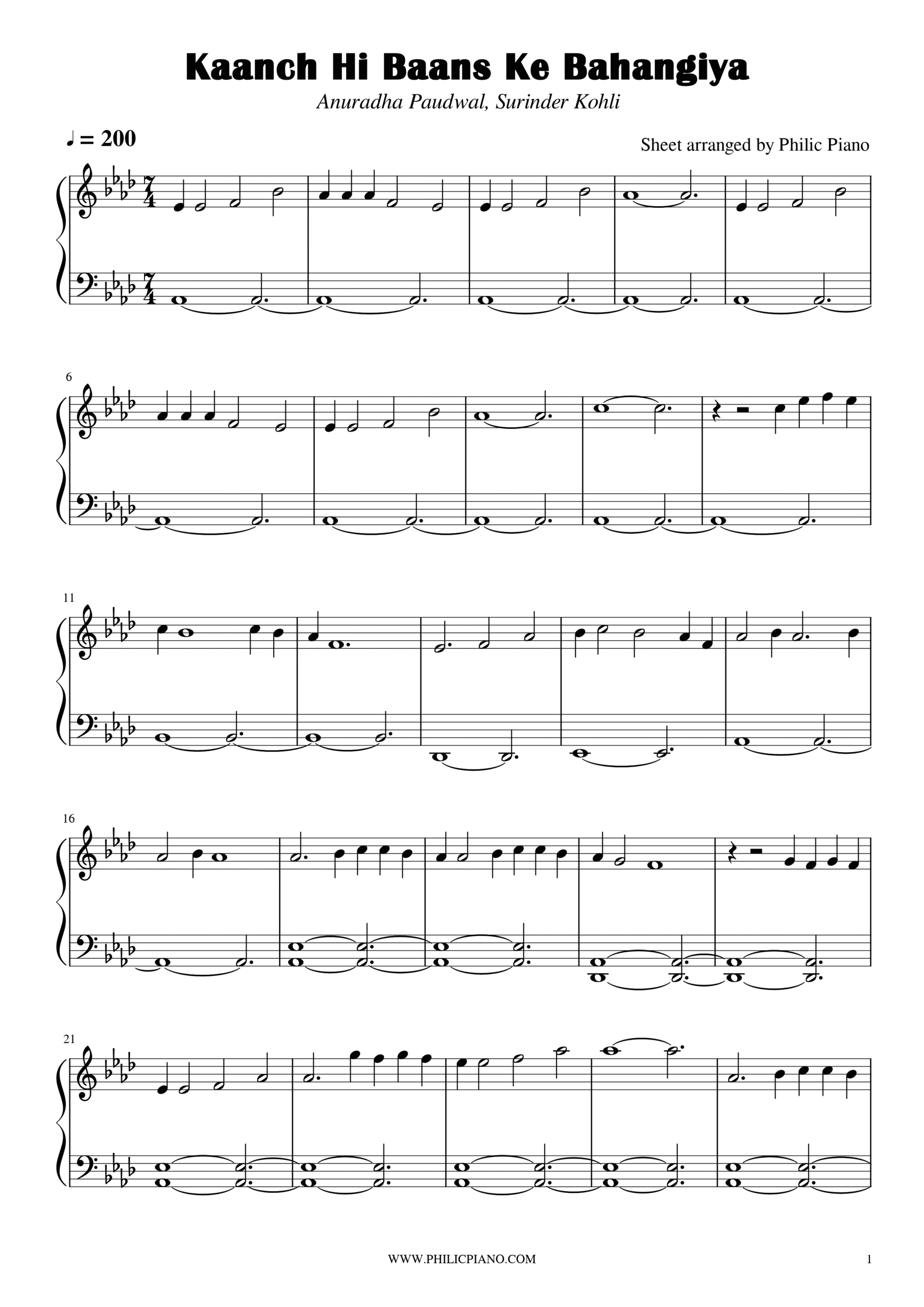 Kaanch Hi Baans Ke Bahangiya Piano Notes/Sheets/MIDI*