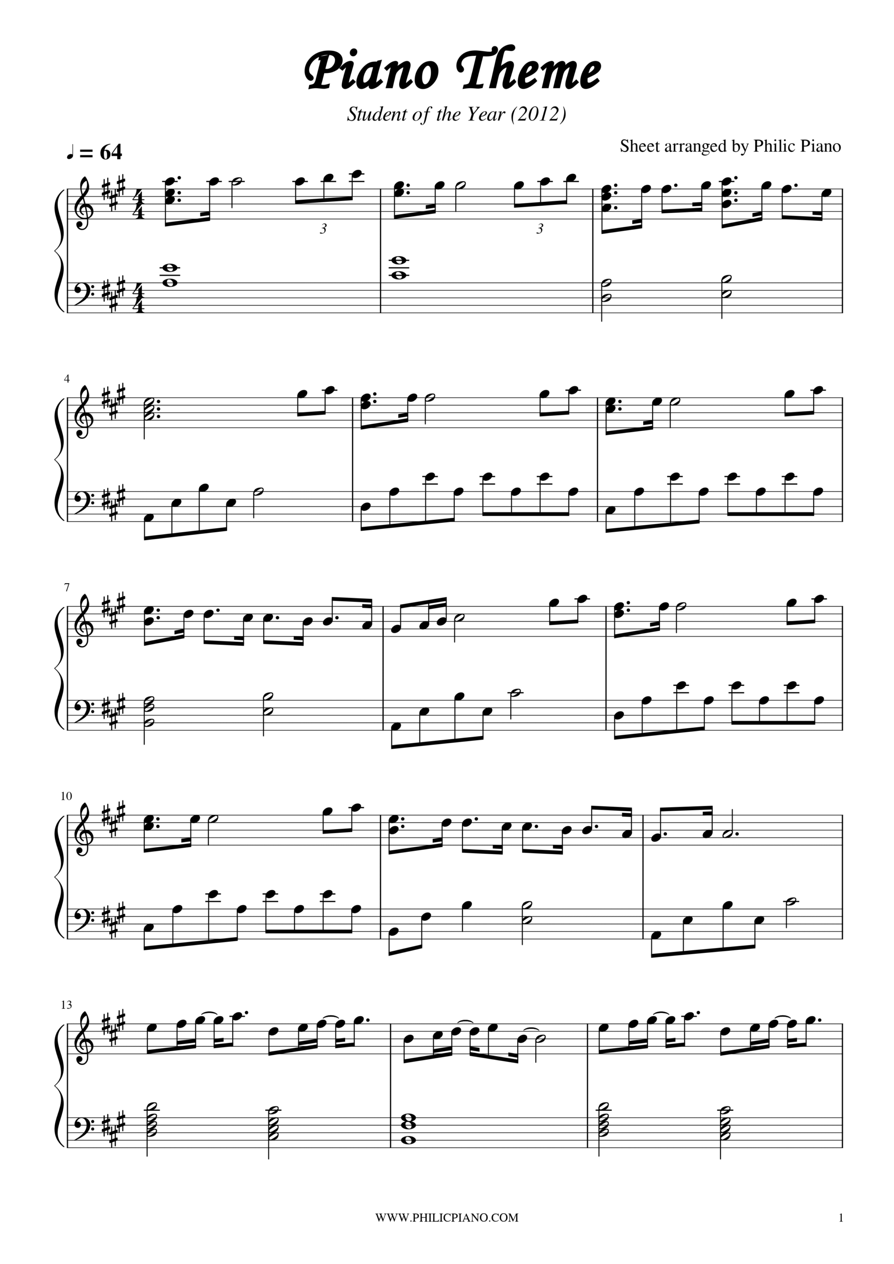 Download Piano Notes/Sheets/MIDI of Student of the Year – Piano Theme