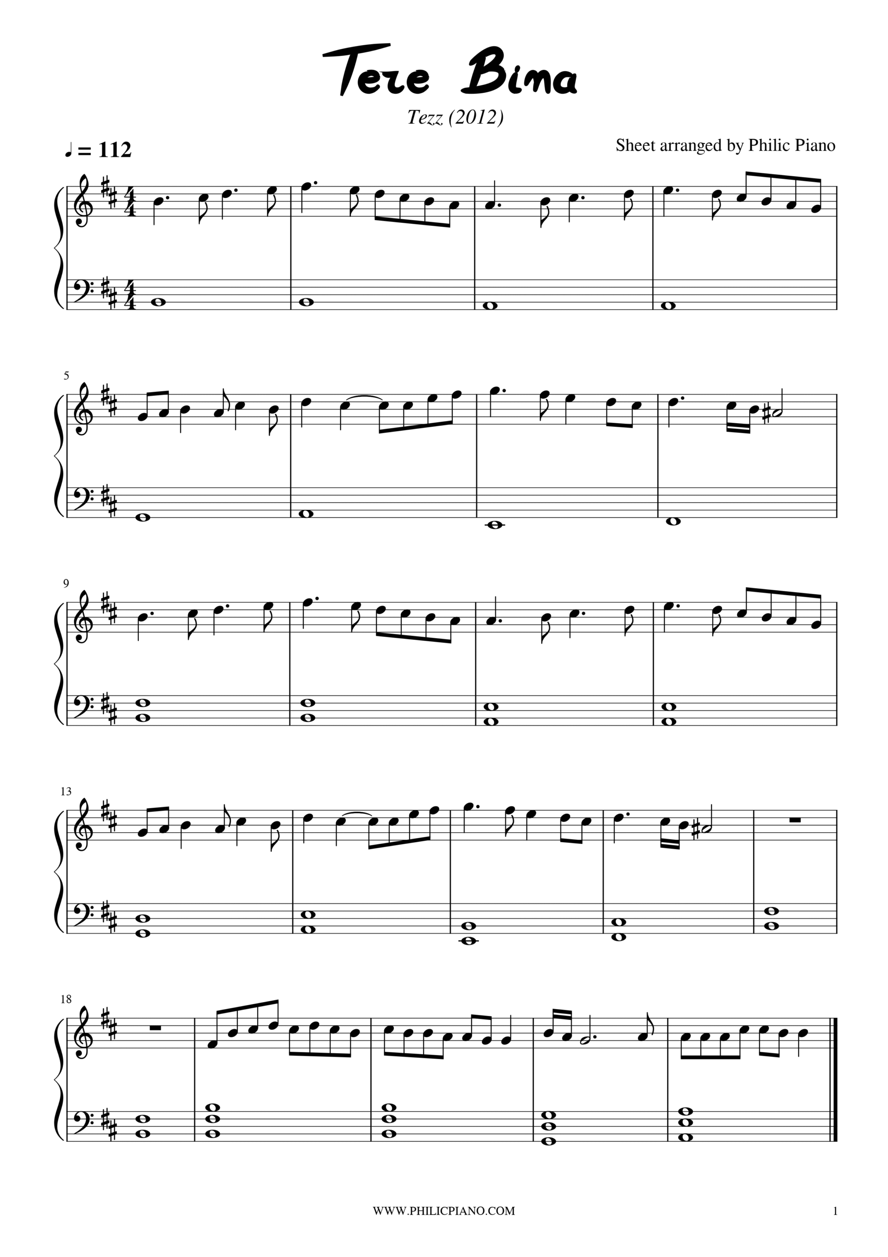 Download Piano Notes/Sheets/MIDI of a hindi song Tere Bina.