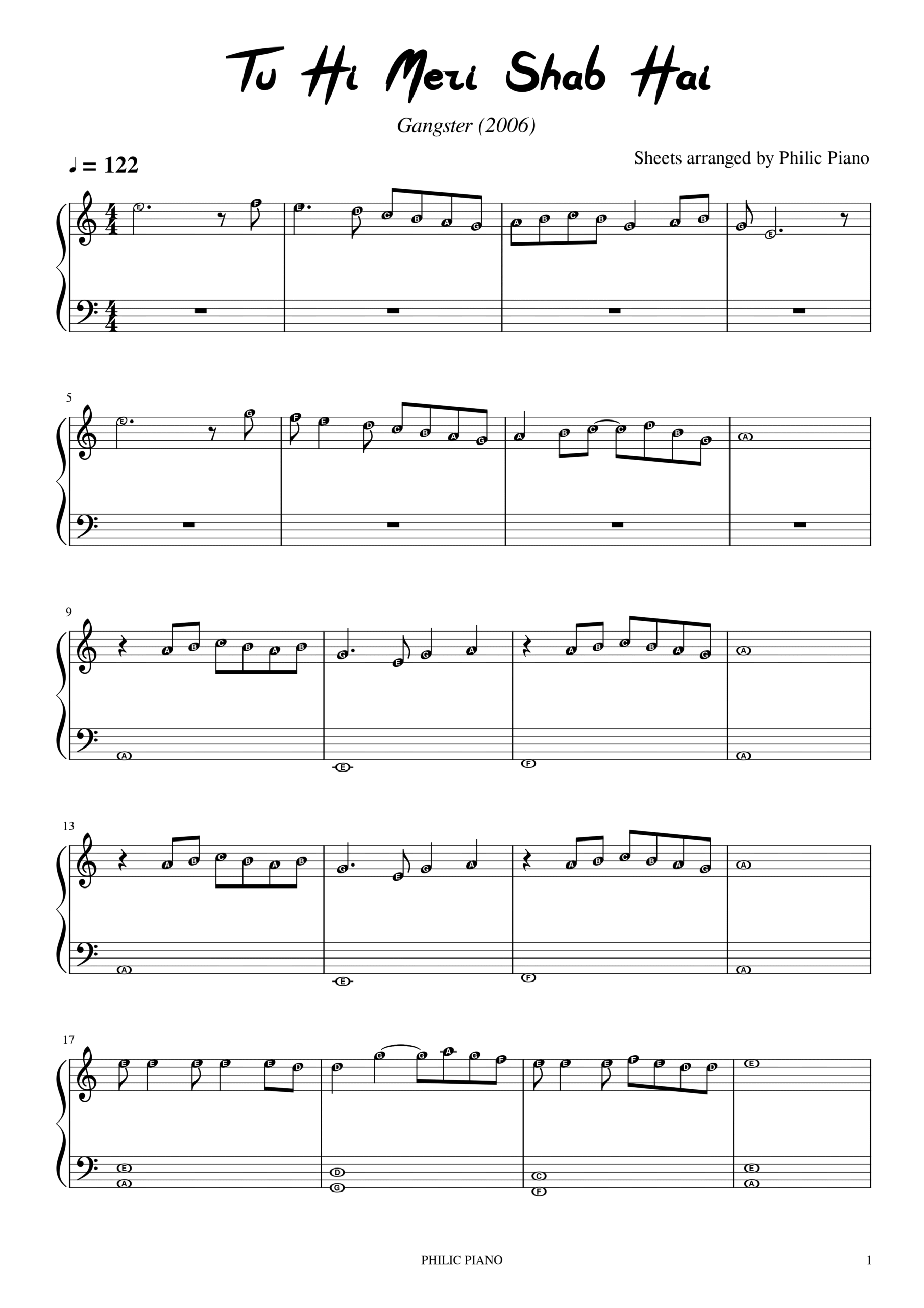 Tu Hi Meri Shab Hai Piano Notes/Sheets/MIDI*