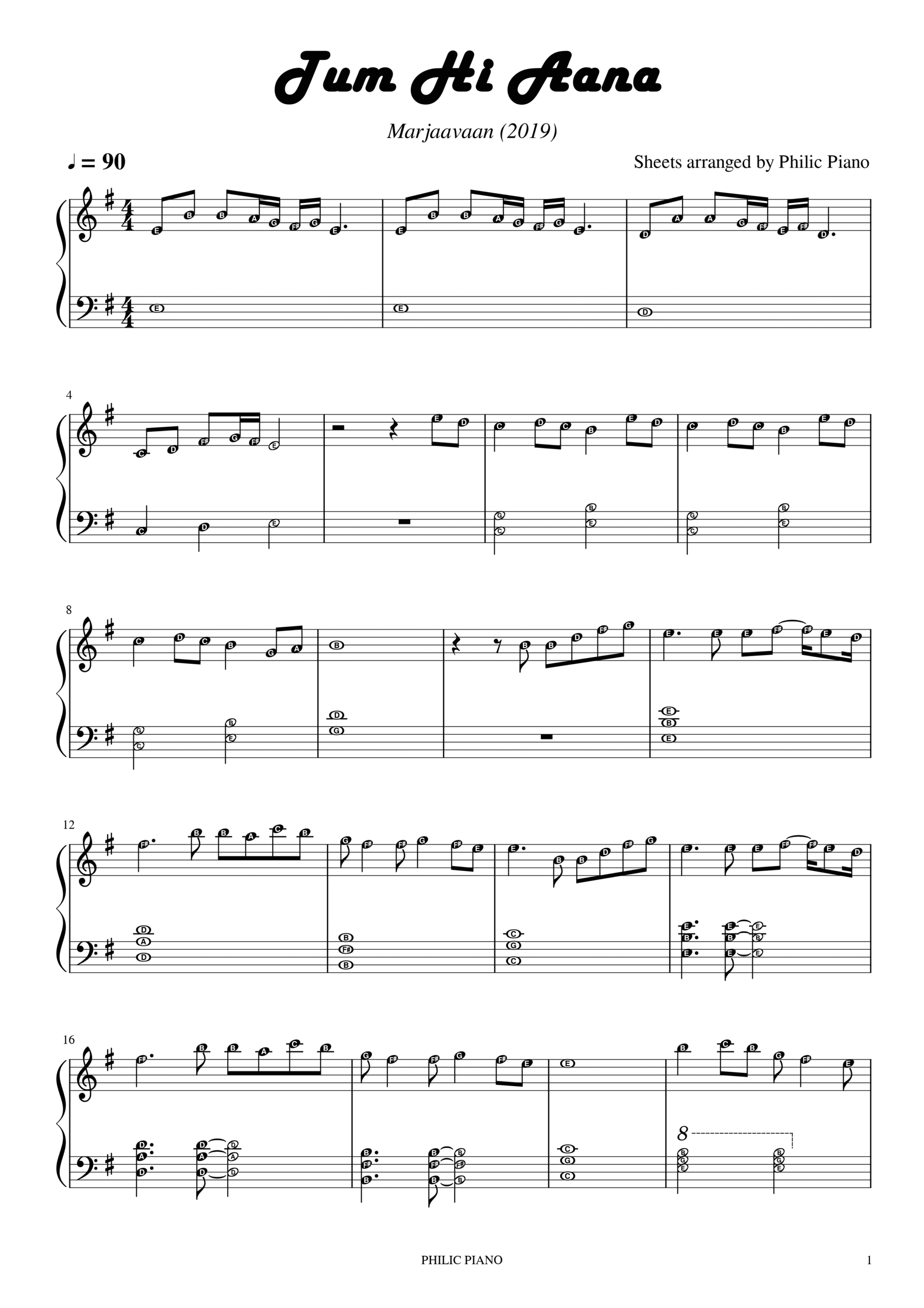 Download Piano Notes/Sheets/MIDI of a hindi song Tum Hi Aana.