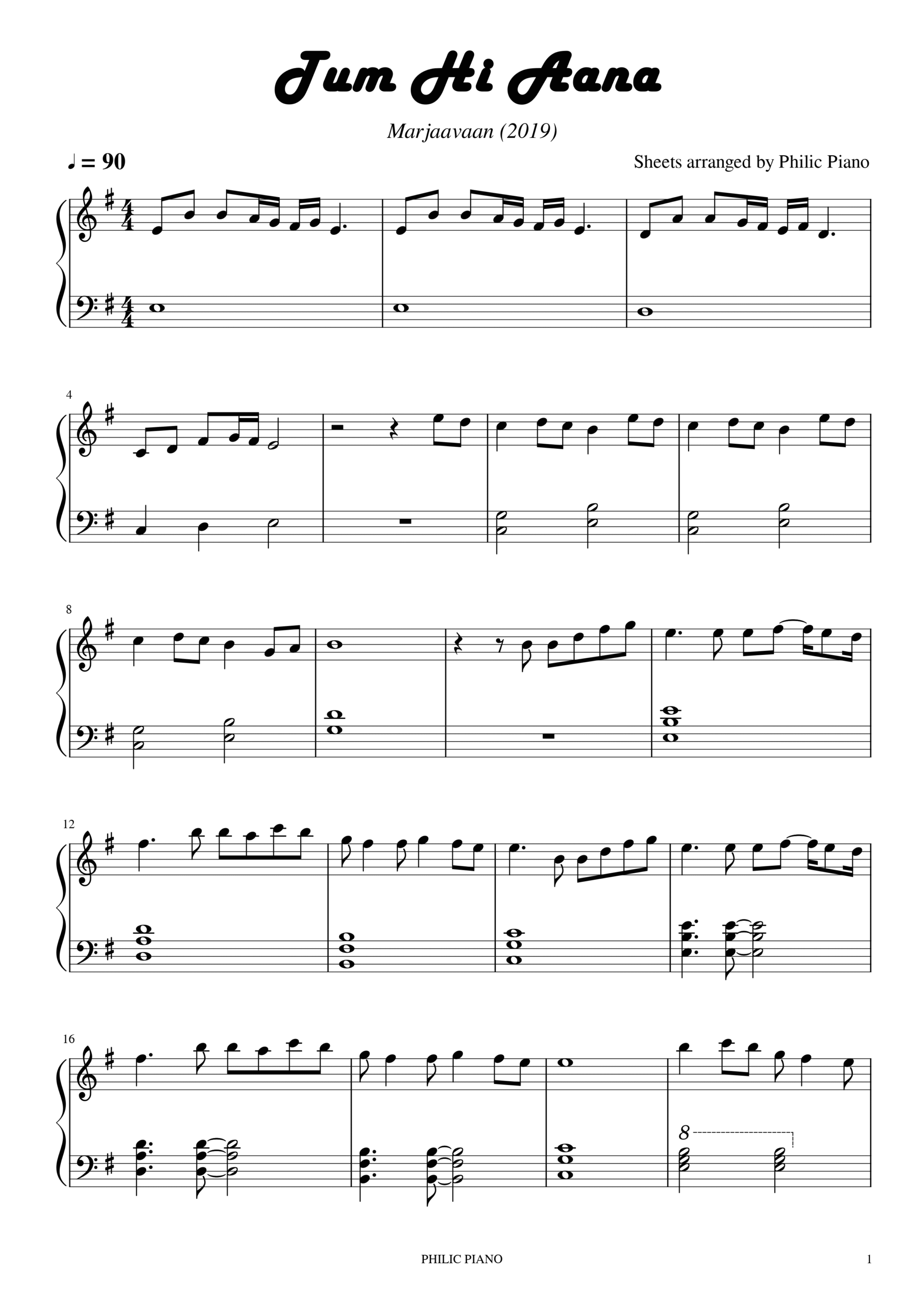 Tum Hi Aana Piano Notes/Sheets/MIDI*